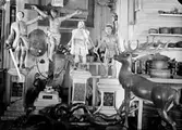 Blomqvists tunnbinderi på Ängö. Erik Blomqvist berättar om bilden: "...från vänster en yngling som håller på att resa en "drittel" (tyskt ord) vid sidan om honom står min farfar N. G. Blomqvist som håller handen på en färdig drittel. Nästa man är min far Karl Blomqvist som håller på att nita ett band till en ekkagge. Något bakom honom vid fönstret står en morbror Axel Franzen och sedan står Albert Blomqvist, som sedan blev den sista ägaren av verkstaden. Framför honom står halvfärdiga ekkaggar, mannen längst till höger är i färd med att tillverka sillfjärdingar, längst till höger syns två färdiga kaggar".