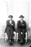 Enligt fotografens notering: "Sjömannen Sigurd Andersson t.v. Skaftö visar sjömansarbete".