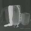 Baddräkter 12 maj 1966 I en rulltrappa passerar en modell iklädd genomskinlig vit body samt med vita trosor inunder denna och svart hatt på huvudet med mönstrat band på, en äldre dam iklädd svart jacka, vit veckad kjol samt vita skor på fötterna. Den äldre damen bär två kassar, en i vardera handen. or. Han går nedför en kort trappa utomhus.