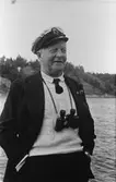 Ingenjör och vägmästare Nils Gustafsson. Kikare på stativ. Schaktmassa. Stockholms län.