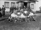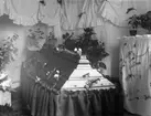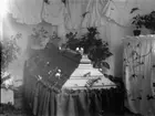 En kista med kistdekorationer. Enligt Walter Olsons journal är bilden beställd av fru J alb. Johansson ifrån Norra vägen 44.