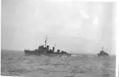 Det bärgade vraket av jagaren Klas Horn under inbogsering till Stockholm 22.11.41.