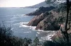 Enl. text i blå bok: "Seglare" vid klippstrand."