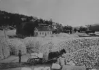 Uppgift enligt fotografen: "Bohus Malmön. Hästfora, transport av gatusten."