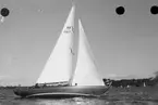 [från fotobeskrivningen:] "Sjösättningen av GULLVEIG II på Arendals båtvarv 1947. GULLVEIG (14,10 x 2,84). 65 kvm GULLVEIG 1947. Eril [sic] Salander foto 12 juni 1947."