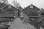 Carl Gripenstedt och barn på kräftfiske, ca 1935