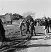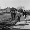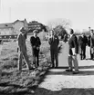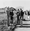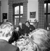 Jubileumshedersgäst var dåvarande kung Gustaf VI Adolf. Här skriver kungen i gästboken och sätter sin namnteckning på ett museibrevkort, under överinseende av postvärdinnan Inger Svärd.