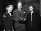 "Öppnandet av den internationella kursen". Kursens president, den nyutnämnde sociologiprofessorn Torgny Segerstedt, samt miss Ruth och dr Esther Meixner", Uppsala augusti 1947
