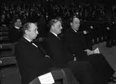 Professorerna Josua Tillgren och Åke Holmbäck samt kursens sekreterare folkskollärare R Rydén på öppningen av Centralförbundet för nykterhetsundervisnings upplysningskurs i Universitetsaulan