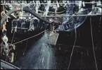 Länsning med handlänspump ombord på jagaren GÄVLE.
