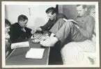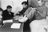 Volontärer i ledig klädsel i logement 1890-tal. Krigsskolan Karlberg.