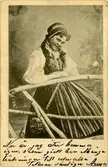 Porträtt på en kvinna klädd i Leksandsdräkt, Dalarna.