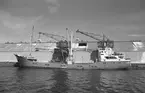 Exteriör. Lossning. Lyftkran med okänd last. Farstaviken.