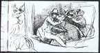 "Bröllopsresan". Två kyssande par i en vagn. Tuschteckning av Fritz von Dardel