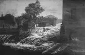 "Mölndalsfallen" - oljemålning av Ludvig Messman 1868. Till höger: dåvarande västgaveln på Stora Götafors.