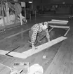 Mallvinden till nya plåtslagareverkstaden på Oskarshamns varv under byggnad. Anm.Bilden bakvänd.