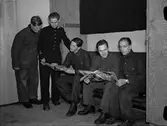 Interiör av aktra torpedrummet med manskapsförläggning ombord på u-båten Sjöormen 1954.