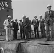 Museinämnden samlad framför galjonsbilderna i galjonsträdgården från vänster kapten Granström, kommedör Wester mariningenjör Halldin och kontrollant Nilsson.