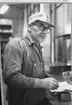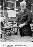 Värmeledningsskötare och reparatör Karl Jansson sköter museets värmesystem 1952. Ur dokumentation av personalfotografier, SSHM.