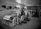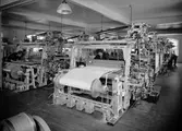 Maskinvävstolar i rad i vävsal på Krokslätts fabrik.