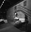 Vägstation Vmo X11, Delsbo. Materielförråd i öppet skjul. Vägtrummor av plåt, vedupplag