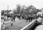 En grupp militärer har tagit uppställning på Kungsholms fästning, inre borggården.