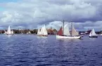 Mindre svenska och norska segelfartyg utanför Fiskehamnspiren, Göteborg 1940. Fil lic Gunnar Jonssons undersökningsresa till Västkusten juni 1940.