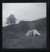 Romer, Södra folkparken/Västberga folkpark, södra Stockholm. Äldre man med skägg, enligt uppgift Kori Taikon, bär ett litet barn. Tält i bakgrunden.