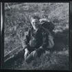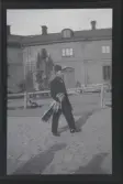 Romer, Södra folkparken/Västberga folkpark, södra Stockholm. Johan Demitri Taikon t h, t v troligen sonen Josef, bärandes på en plåtbalja.