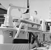 Sjöhistoriska museets modellverkstad. Stefan Bruhn i arbete med sin modell av en mälarjakt från 1700-talet.