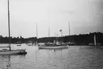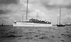Mariehamn. Familj i motorjakt med flagga från Nyländska jaktklubben.