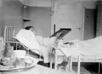 H55 Helsingborgsutställningen Interiör, två sängar med nattygsbord emellan dem.