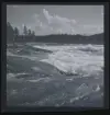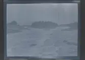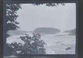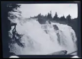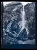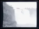 Målad bild på glas för skioptikon/laterna magica. Vattenfall, naturfenomen.