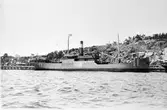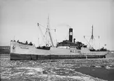 Foto i svartvitt visande lastångfartyget "H.WICANDER" av Stockholm.