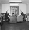 Telegrafverket. Ingenjör B. Bondesson och distriktschef I. Norberg visar en ny myntapparat ifrån vilken man kan ringa rikssamtal och som ska sättas upp på försök i Stockholm.