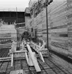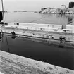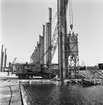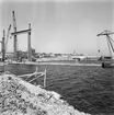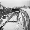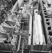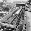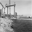 Oskarshamns varv. Nya stapelbädden. Svetshallen sedd från insidan av varvet.