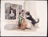 "Stello lekfull". En nyfiken hund, Malmö 1848. Akvarell av Fritz von Dardel.