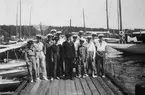 Från den s k Segelveckan i Helsingfors 1931 med seglingar arrangerade av Finlands Seglarförbund och Nyländska Jaktklubben, från bryggan nedanför NJK:s klubbhus på Blekholmen.
