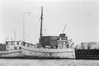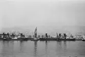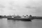 Vid Ryanäs oljehamn, Göteborg 1940. M/S Tykon av Kungsbacka och ett kamouflagemålat fartyg med övermålat namn. Fil lic Gunnar Jonssons undersökningsresa till Västkusten juni 1940.