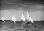 Marcus Wallenbergs 8 meters R-jakt "ILDERIM" under OS-seglingen i Keil 1936. Rorsman Tore Holm.