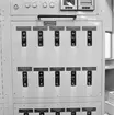 Dokumentation av Karlssons Klister. Panelen på Karlssons Klister maskinen. På panelen finns start och stopp, även omställning för manuell körning. Den första tuben som fylls kör manuellt för att se om strålen från munstycket kommer mitt i tuben.