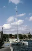 Kroppen till flygplan Spitfire står utanför en hangar på F 3 Malmen. Flygplanet har just anlänt från Kanada i transportflygplanet TP 84.
