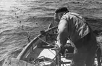 Skrivet på baksidan: Norge Vestagder Flekkevåg Strandparti med bodar. Obs i bakgrunden, vadräckor. Den störr båten är en räktrålare.