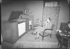 Radiogrammofon konstruerad av Carl Andersson för den kända filmregissören Josef von Sternberg i Hollywood. När man vill komma åt grammofonen rullar man toppen över till radiosidan. De övre delarna är tillverkade av glas med metallfattning.