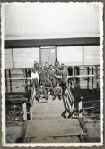 "Ribersborg" Några mannar har slagit sig ner på bron som leder över till en magasinsbyggnad (?) på pålar.