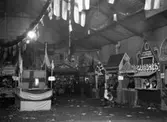 "Hantverkarmässa i Uddevalla 1912 i ridhuset. Montrar och kafé." enligt tidigare notering