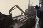 Bilden visar Torpedbärgaren till havs från styrbordssidan.