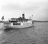 Fotodatum 14/6 1947. Fartyget under gång på Södra Vaxholmsfjärden, skall just gå in i Vaxholmssundet (Fästningssundet)på utgående tur mot Sandhamn.