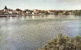 Foto/vykort – solbadande kvinnor och män på Skrea strand