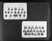 Tre äggkoppar och två saltströare från Bo Fajans, formgivna av Allan Ebeling och Eva Jancke-Björk, 1900-talets mitt.